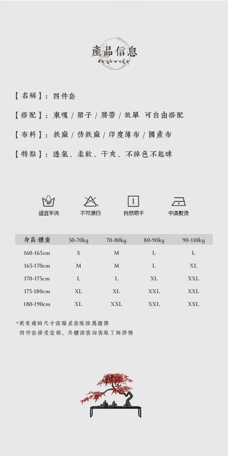 Bộ 4 món] Trang phục tu sĩ Lạt Ma, cashmere Tây Tạng, áo gi lê Dongga, váy và bộ thắt lưng.