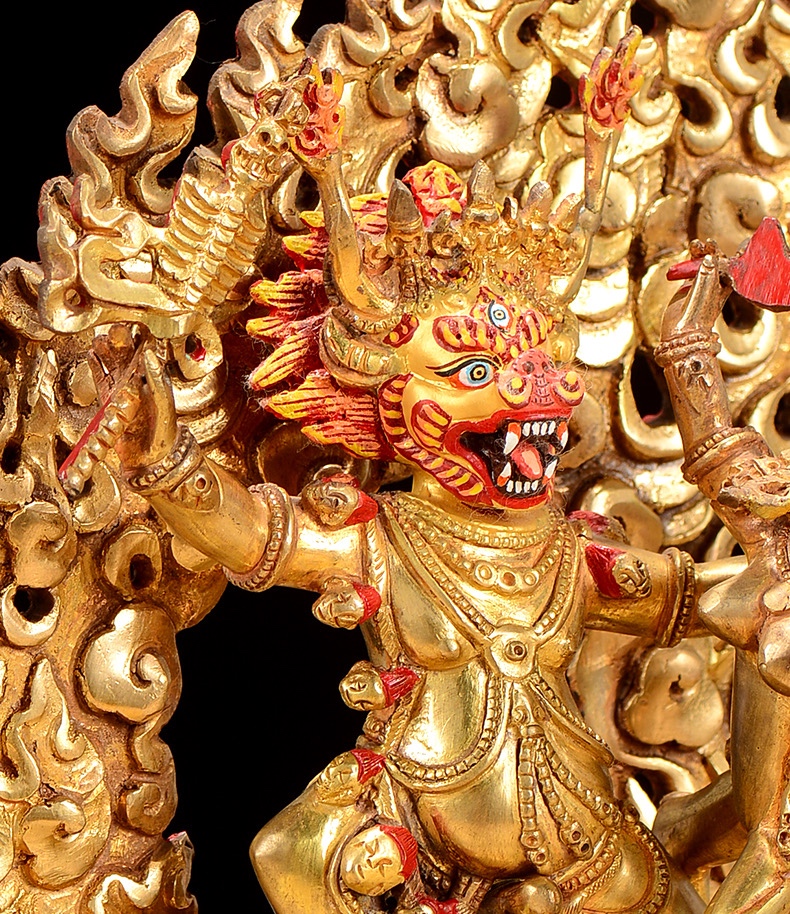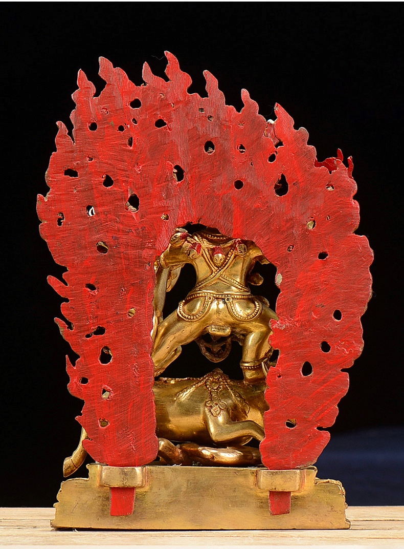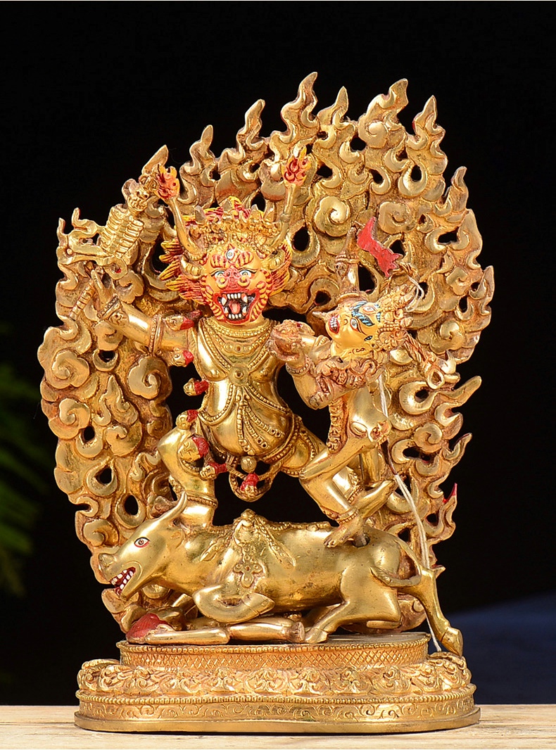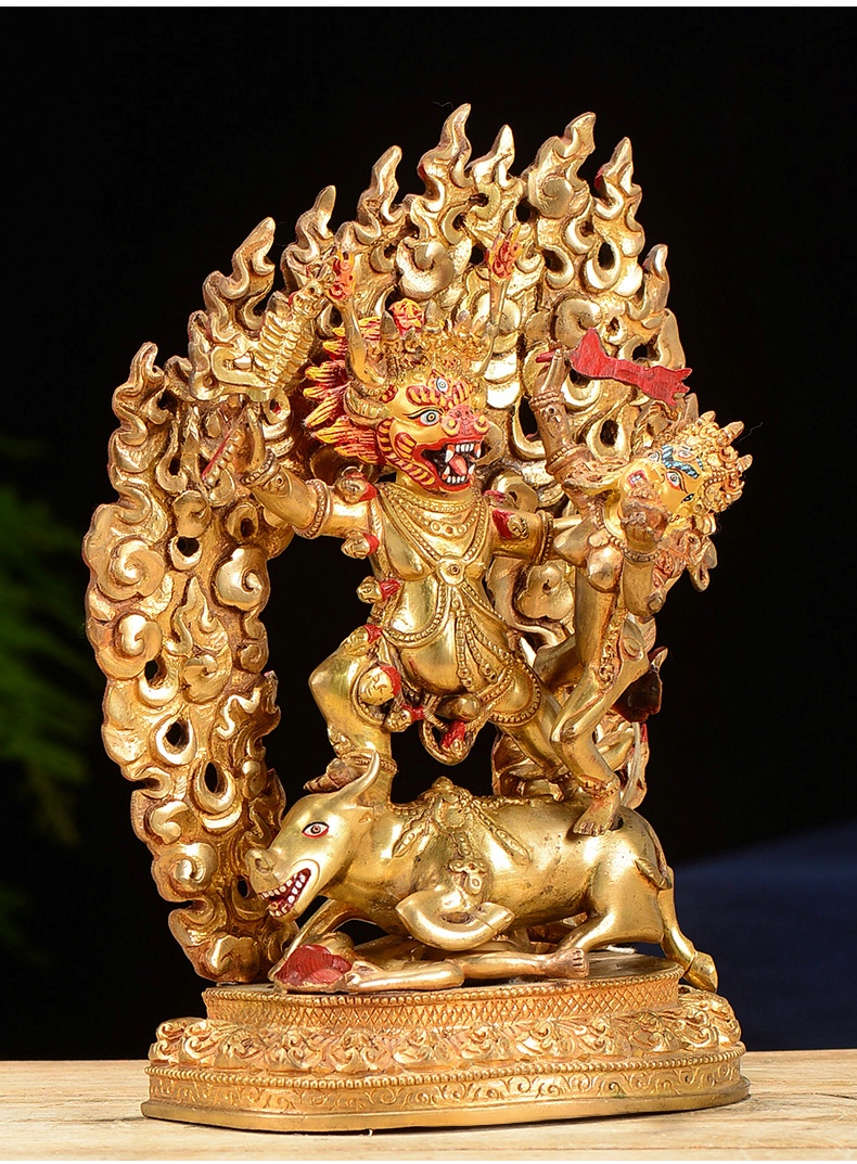 Ngay lúc đó, ông ta lập tức biến thành yama và đội cái đầu trâu vào cái xác ko đầu của mình. Yama giết chết hai tên cướp và uống cạn máu của chúng bởi cái chén được làm bằng sọ của bọn chúng. Trong cơn điên cuồng báo thù, Yama đe doạ tiêu diệt hết tất cả dân Tây Tạng.