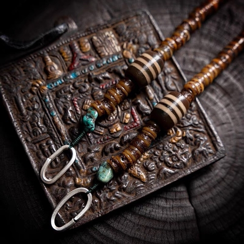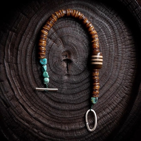 Vòng tay xương Yak mix ngọc lam Tây Tạng